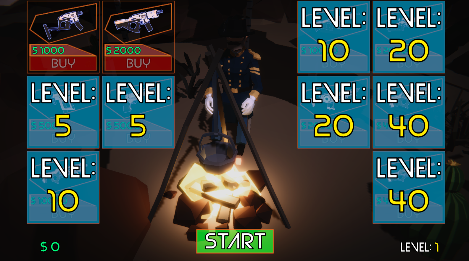 Face waves of 100 enemies in this intense horde shooter. Buy weapons between rounds to prepare for the next onslaught. How many waves can you survive?